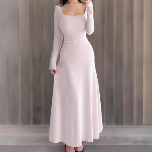 [미라클세븐]여성용 사랑스러운 스퀘어넥 허리끈 플레어 롱 드레스