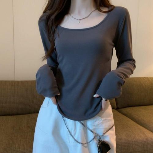 [미라클세븐]여성용 스퀘어넥 골지 긴팔 바디핏 티셔츠
