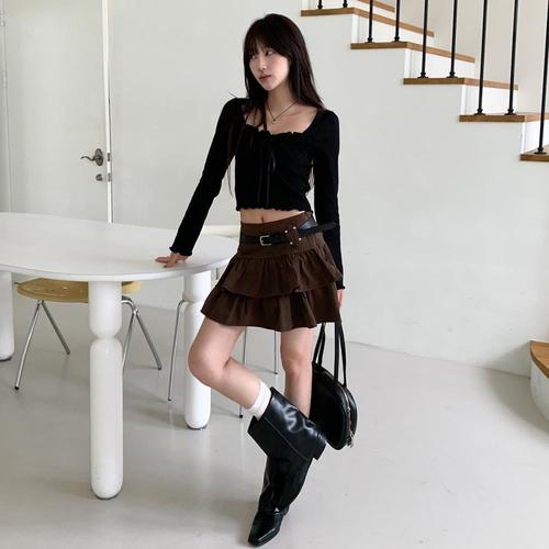 [미라클세븐]여성 스퀘어넥 프릴 레이어드 긴팔 티셔츠