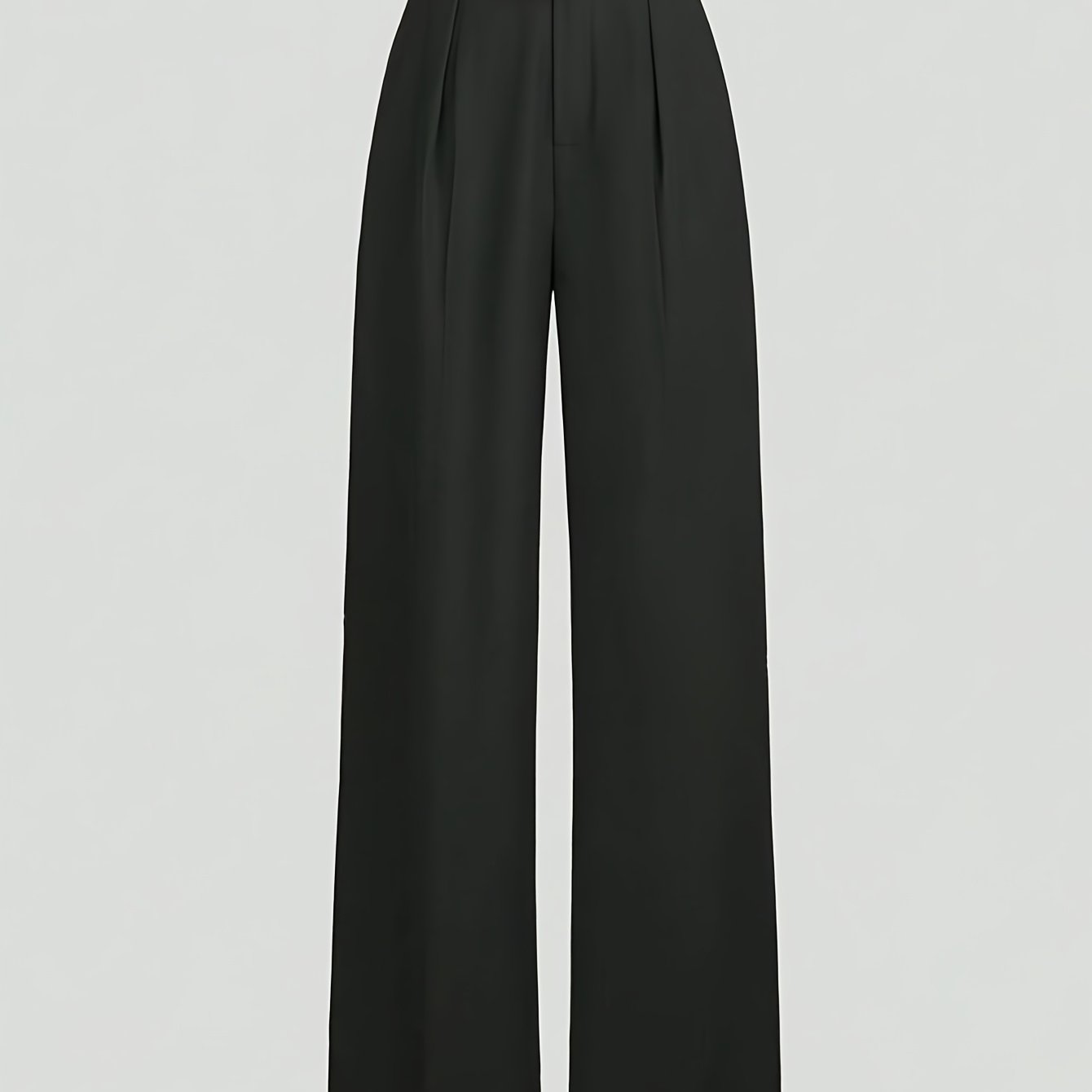 TEMU 플러스 사이즈 - 플러스 사이즈 - 여성용 우아한 하이웨이스트 탄성 허리 밴드 레그 와이드 레그 롱 팬츠 - 3D 테일러링 & 매력적인 루즈핏 단색 캐주얼 팬츠, 슬란트 포켓