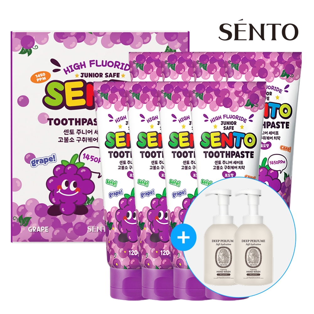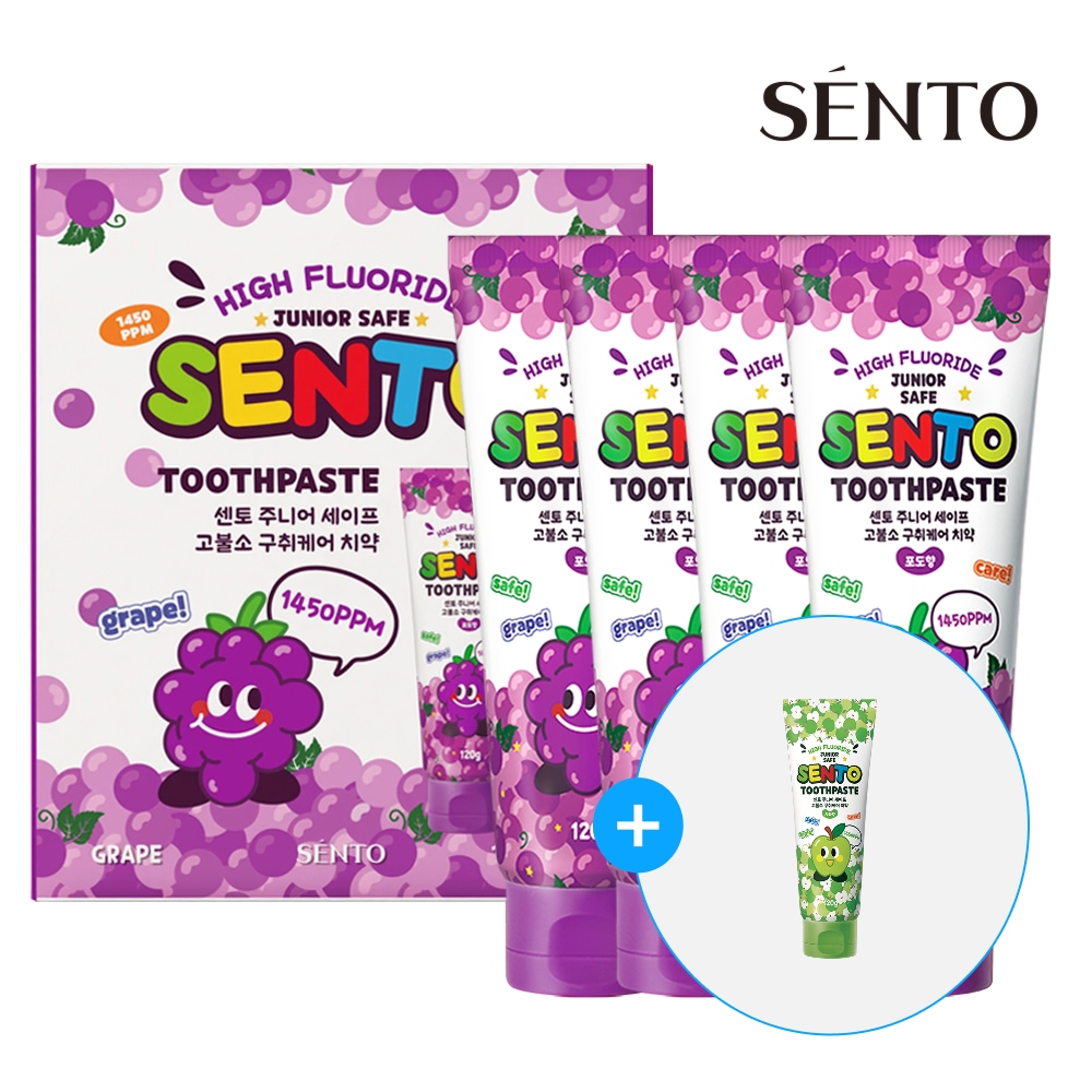 센토 주니어 세이프 고불소 구취케어 어린이치약 포도향, 120g, 4개