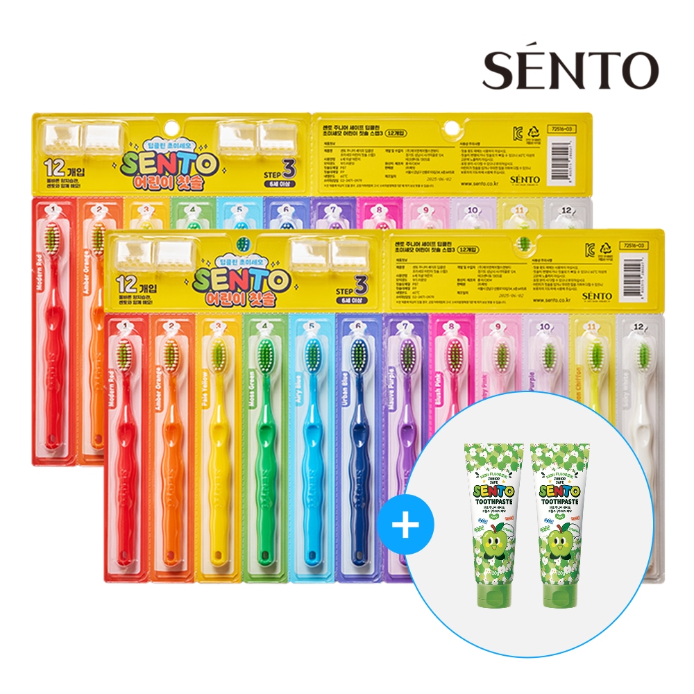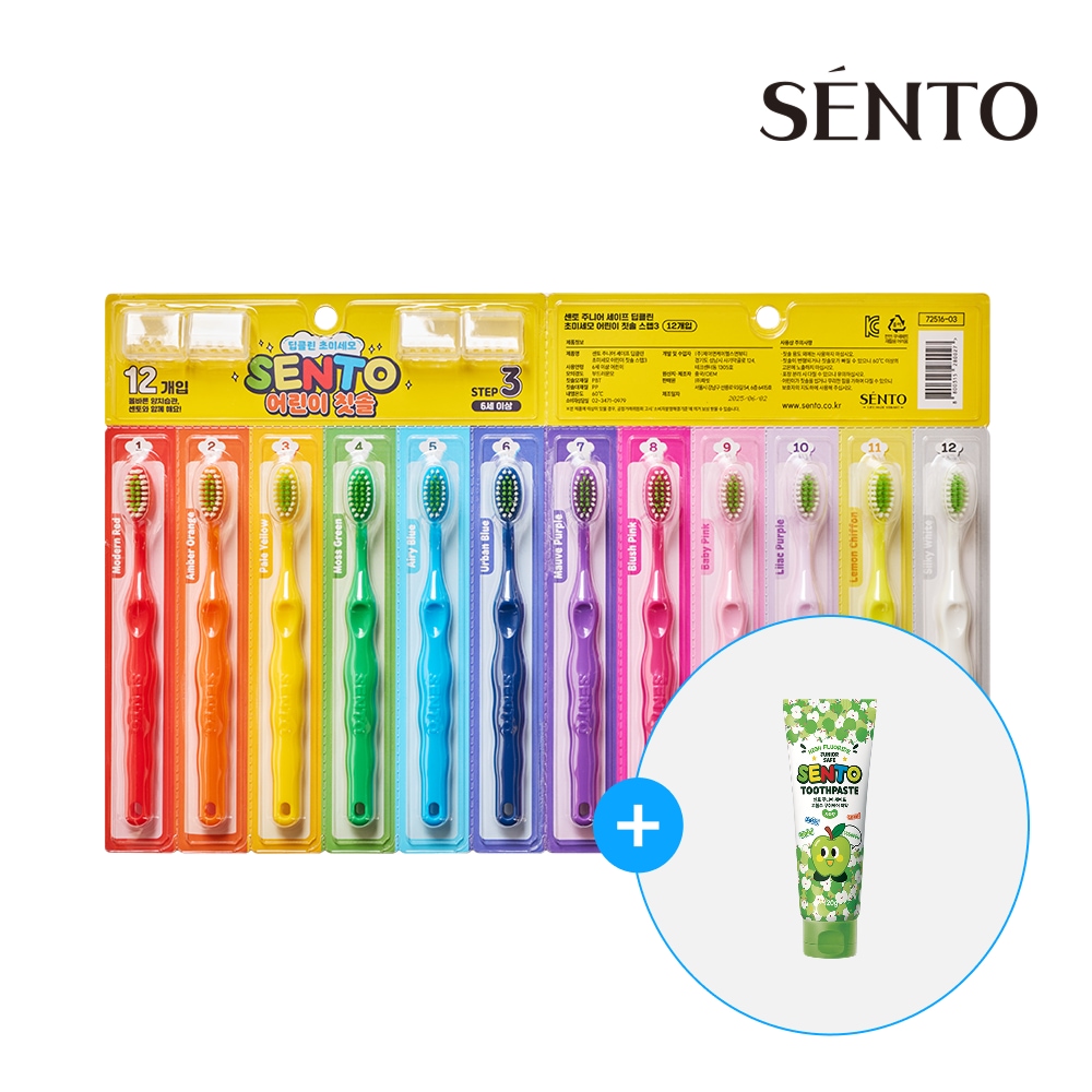 주니어 세이프 딥클린 초미세모 어린이 칫솔 스텝3 12개 +어린이치약 사과향1개