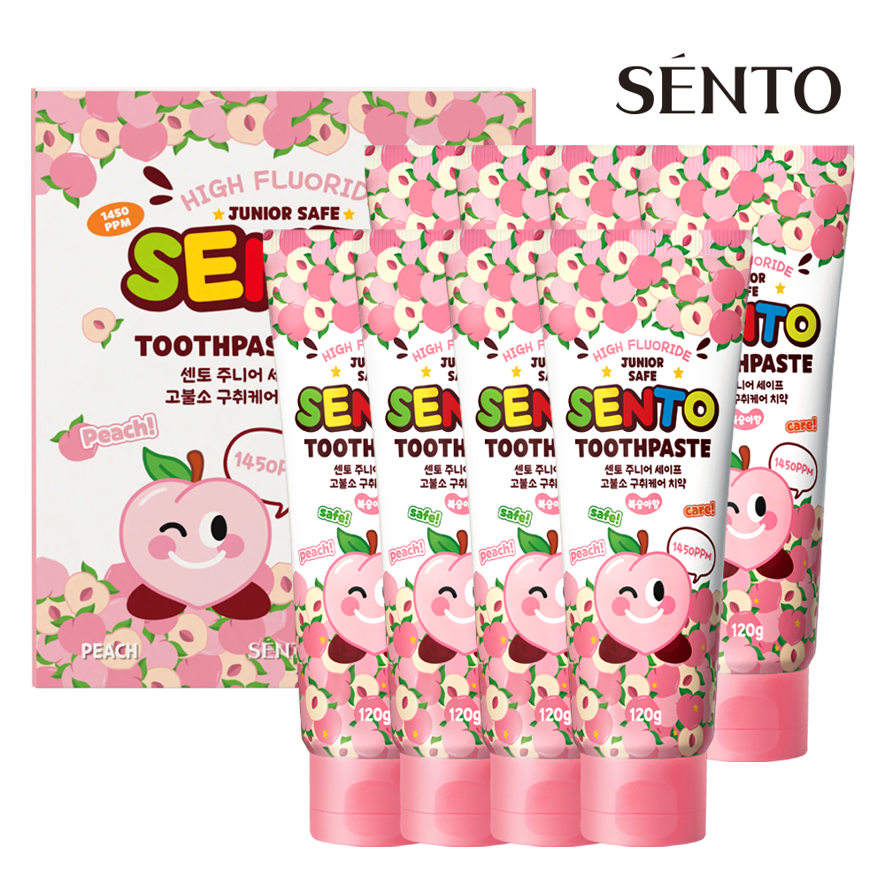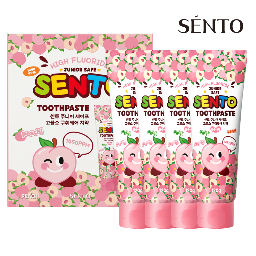 센토 주니어 세이프 고불소 구취케어 어린이치약 복숭아향, 120g, 4개