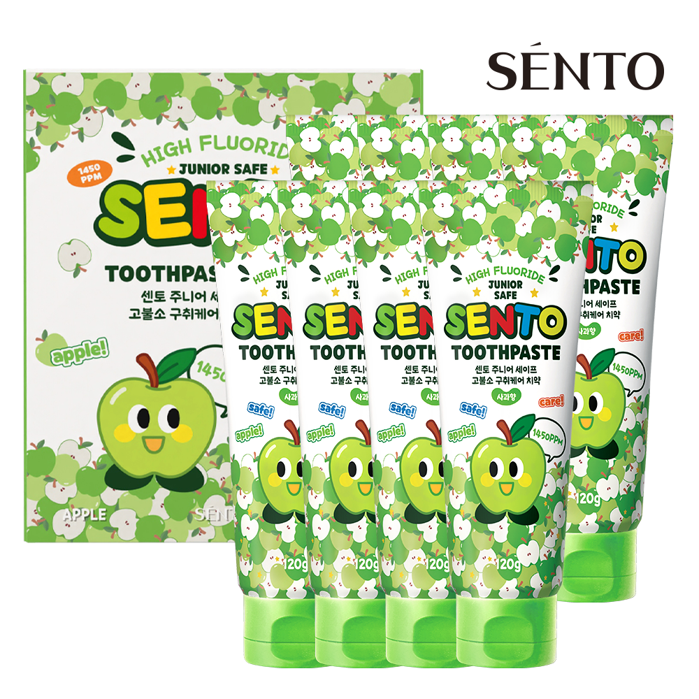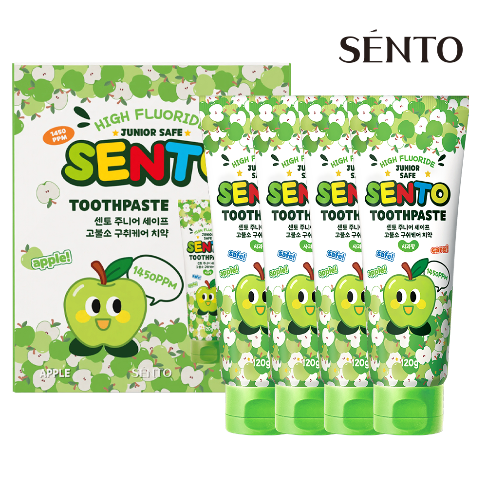 센토 주니어 세이프 고불소 구취케어 어린이치약 사과향, 120g, 4개