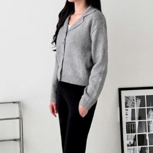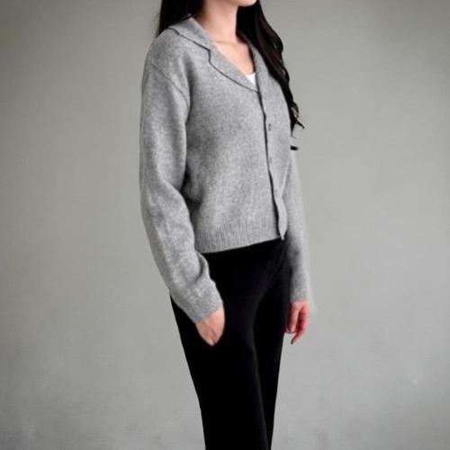 [옷자락] 여성 울혼방 무지 세일러카라 버튼 가디건