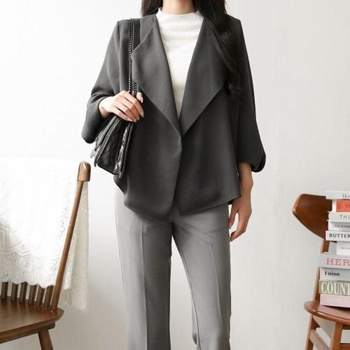 [다잇템][다잇템] 여자 오피스룩 세일러카라 벌룬 가을하객룩 칠부 단추없는 자켓_22720549_588872
