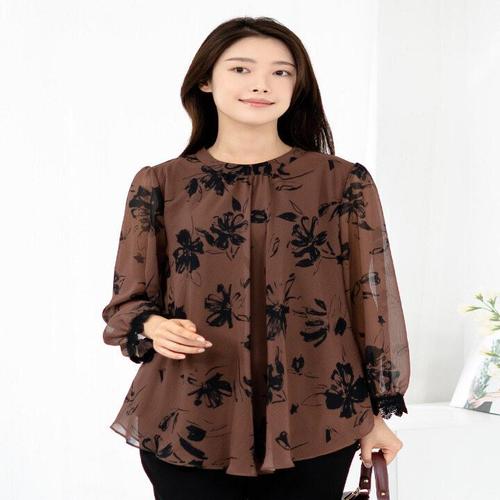 [모슬린]엄마옷 쉬폰 플라워 긴팔 블라우스 613FGH228 마담/중년여성/빅사이즈/50대/60대