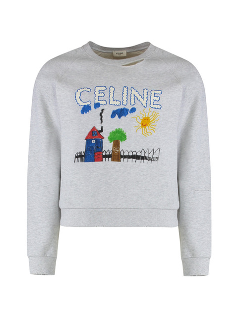 셀린느 로고 디테일 리브 헴 크루넥 맨투맨 RY0SE1233 GGY6