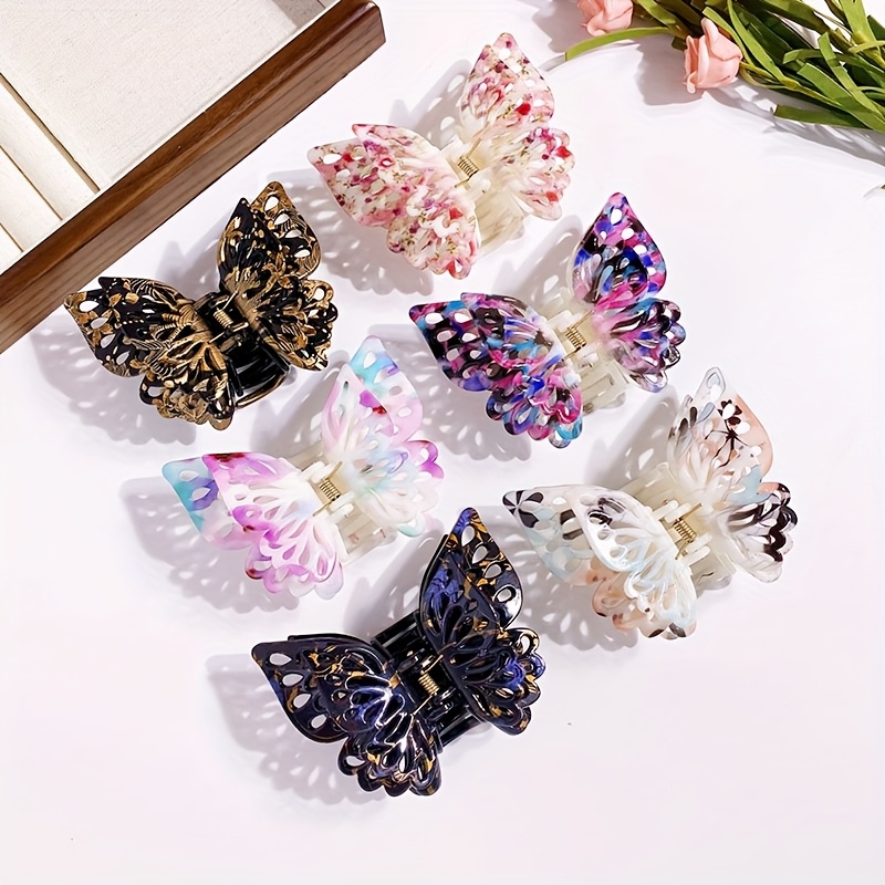 TEMU 여성용 새로운 컬러 헤어 클립, 중간 패션 컬러 매칭 헤어 액세서리, 결혼식 파티 여행에 적합한 견고한 헤어 액세서리, 모든 계절에 어울리는 나비 세 겹 날개 머리 클립 6개