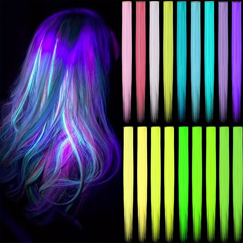 TEMU 9개 세트의 발광 헤어 클립, 20인치 어두운 곳에서 빛나는 가발 연장, DIY용 네온 합성 헤어피스, 여성과 소녀를 위한 다양한 9가지 색상, 스타일