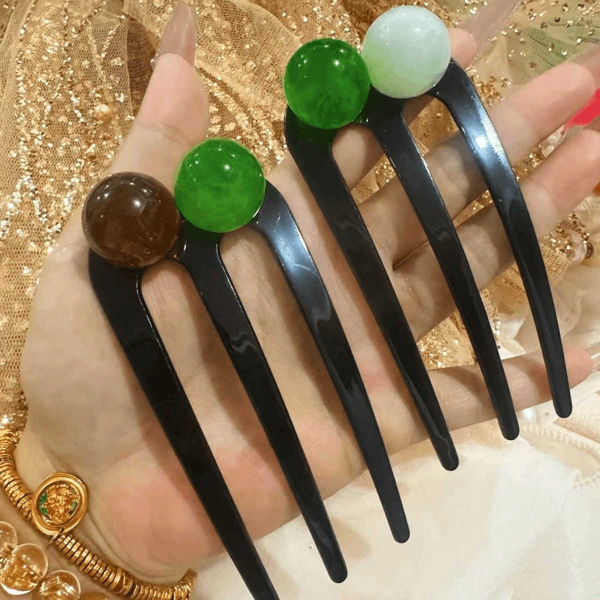 TEMU 2개 세트 우아한 빈티지 헤어클립 - 블랙 & 화이트 그린 합성 보석 장식, 캐주얼&포멀용 올시즌 여성 헤어 액세서리, 고급스러운 클래식 머리핀, 스타일리쉬 핀