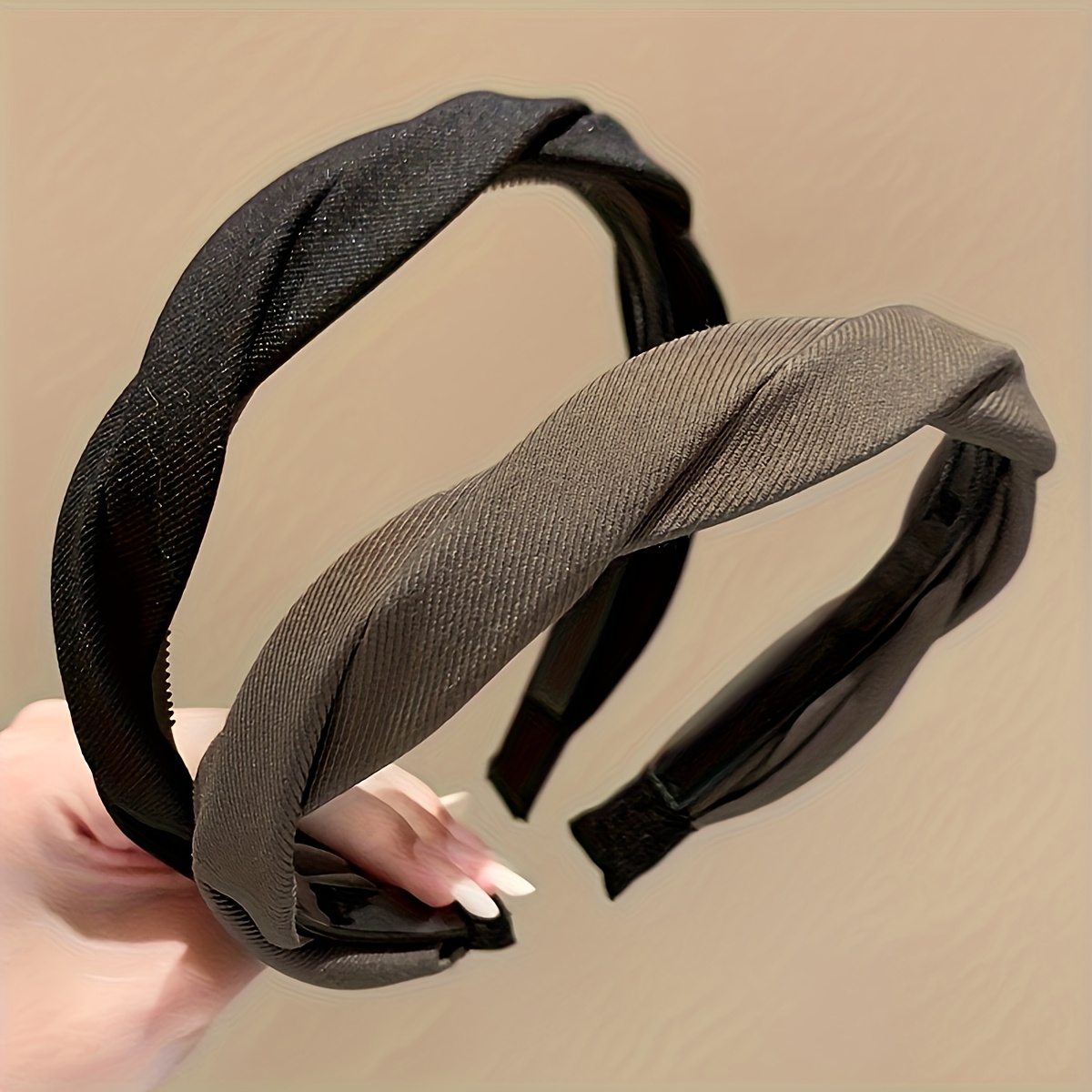 TEMU 2개 세트 우아하고 빈티지 스타일의 여성용 단색 헤어밴드 - 미끄럼 방지 그립이 있는 시크한 라운드 헤어 후프, 스타일링 및 세안에 완벽, 헤어 액세서리