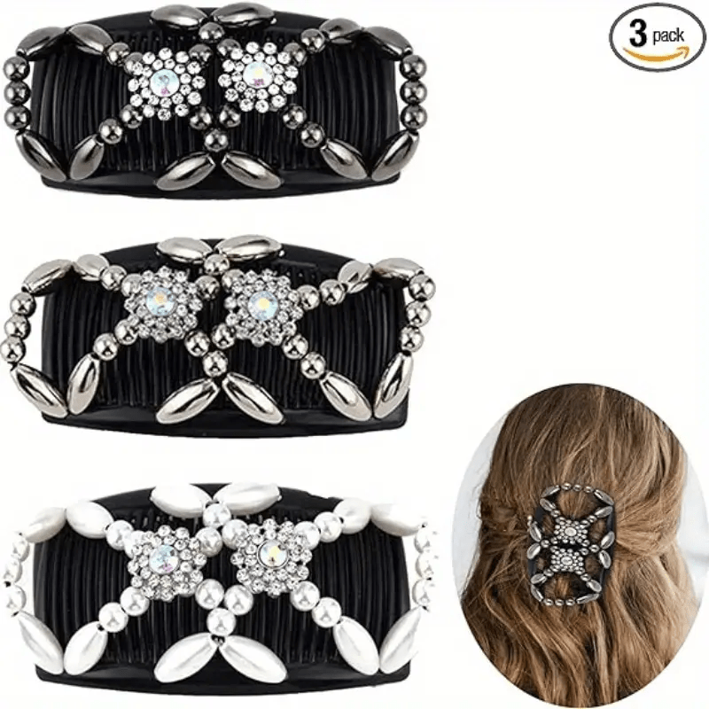 TEMU 3개/7개 매직 비즈드 헤어 커밍 세트, 탄성 더블-티스 커밍 클립, 탄성 비즈드 헤어 후프, 패션 헤어핀, 헤어 더스터, 매직 비즈드 여성용 더블-클로 바레트, 일상 착용용, 가족에게 완벽한 선물