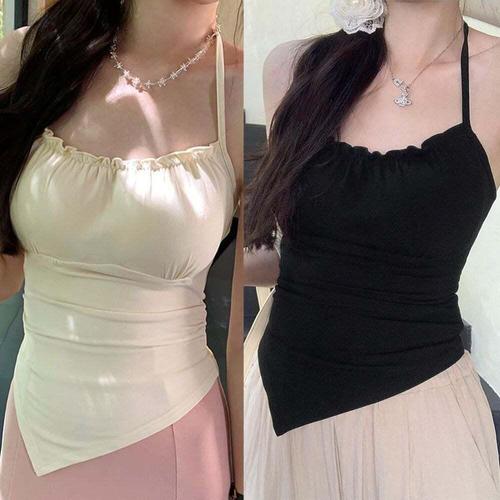 |CHTA1E9|여성용 봄여름 경량 셔링 크롭 민소매