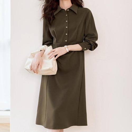 BuGeum 여성 봄 가을 원피스 슬림 허리끈 긴팔원피스