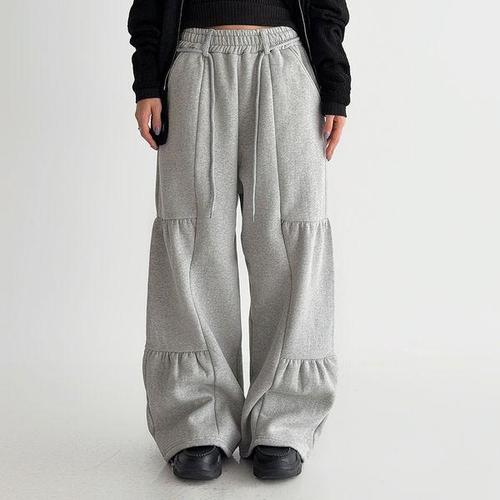 [신상오픈런]여자 캉캉 셔링 스트링 벌룬 와이드 기모 가을 바지