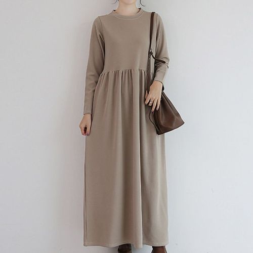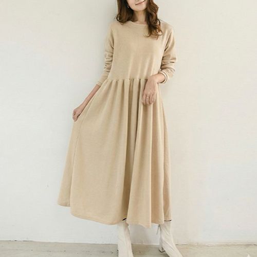 나바바 / NO963 캐주얼 데일리 무지 셔링 라운드넥 긴팔 롱원피스