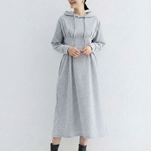 나바바 / NO964 여성 허리 셔링 긴팔 후드 롱원피스