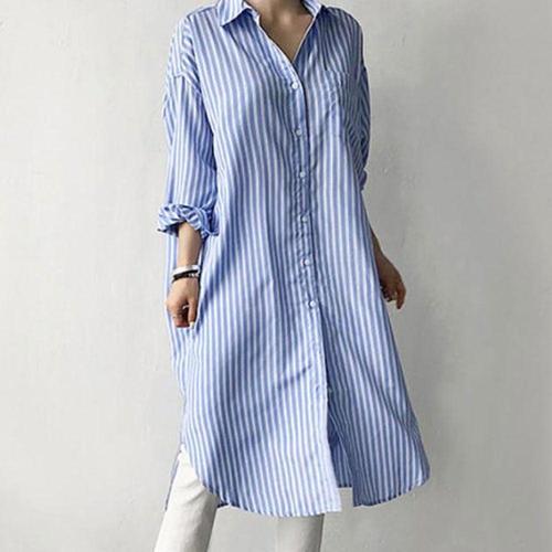 여성 데일리 블라우스 셔츠 직장인 스트라이프 롱원피스셔츠 오피스룩 여자 봄룩 오버핏 루즈 소개팅 미팅