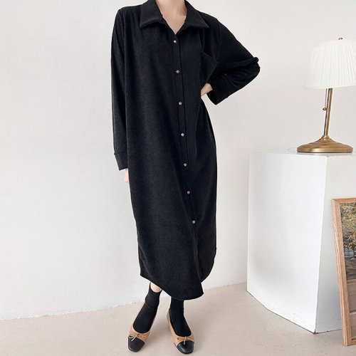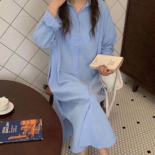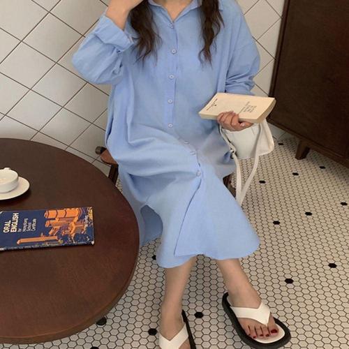 POMTOR 여성 봄 가을 긴팔 셔츠 롱 원피스 오피스룩