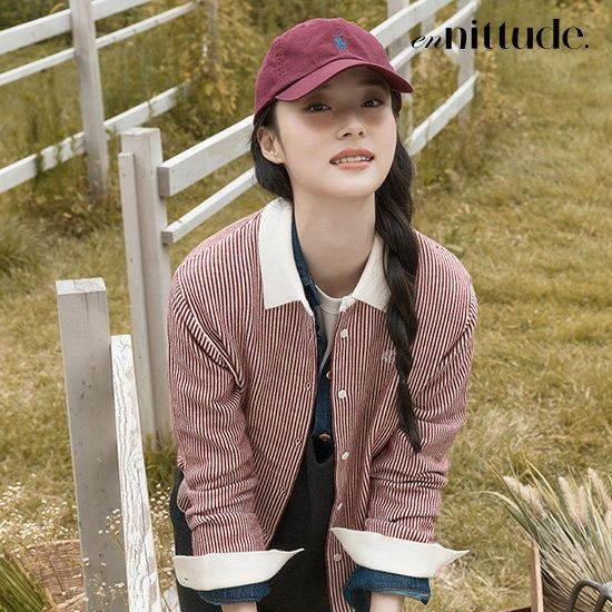 스트라이프 레이어드 배색 셔츠가디건 배색 일체형 세트 셔츠