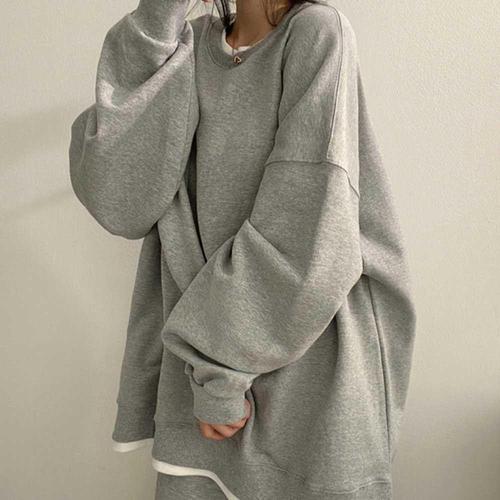 여성 레이어드 밑단 티셔츠 기모 맨투맨 루즈핏 스?셔츠 2색 WFKXMFK