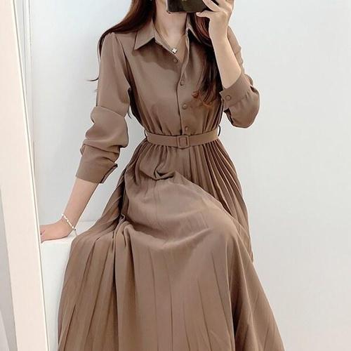 [디자이너몰]여성 우아한 플리츠 벨트 셔츠 원피스
