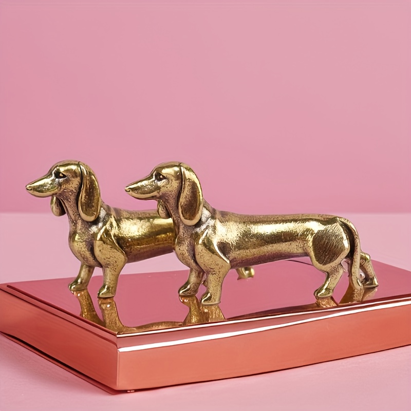 TEMU 2개 세트 빈티지 골든 닥스훈트 조각상 - 수제 노란 황동 피규어, 홈 데코용 강아지 컬렉터블, 반려동물 애호가 및 동물 수집가를 위한 이상적인 선물, 전기 불필요, 내구성과 안정적인 디자인