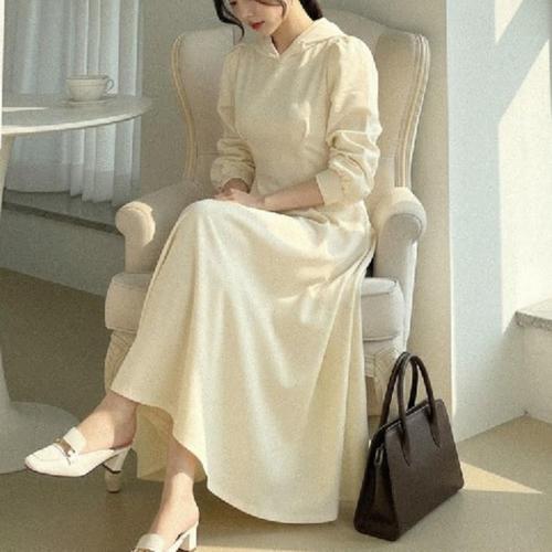 [옷자락] 여성 캐주얼 카페룩 데일리 후드 긴 원피스