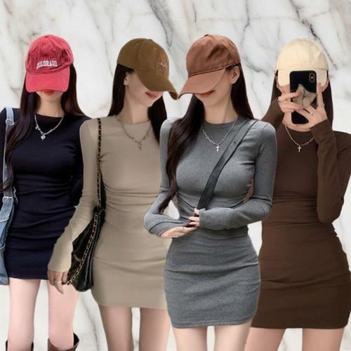 TEMU 고급스러운 느낌의 새로운 가을/겨울 원피스. 허리 라인을 강조하는 디자인으로 몸매를 부드럽게 연출하며, 긴 소매와 편안하고 캐주얼한 스타일이 특징입니다.