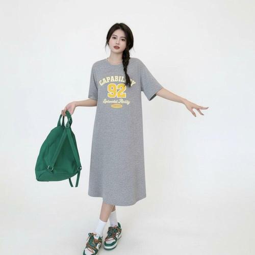 [미라클세븐]여성 오버사이즈 프린트 반팔 캐주얼 원피스