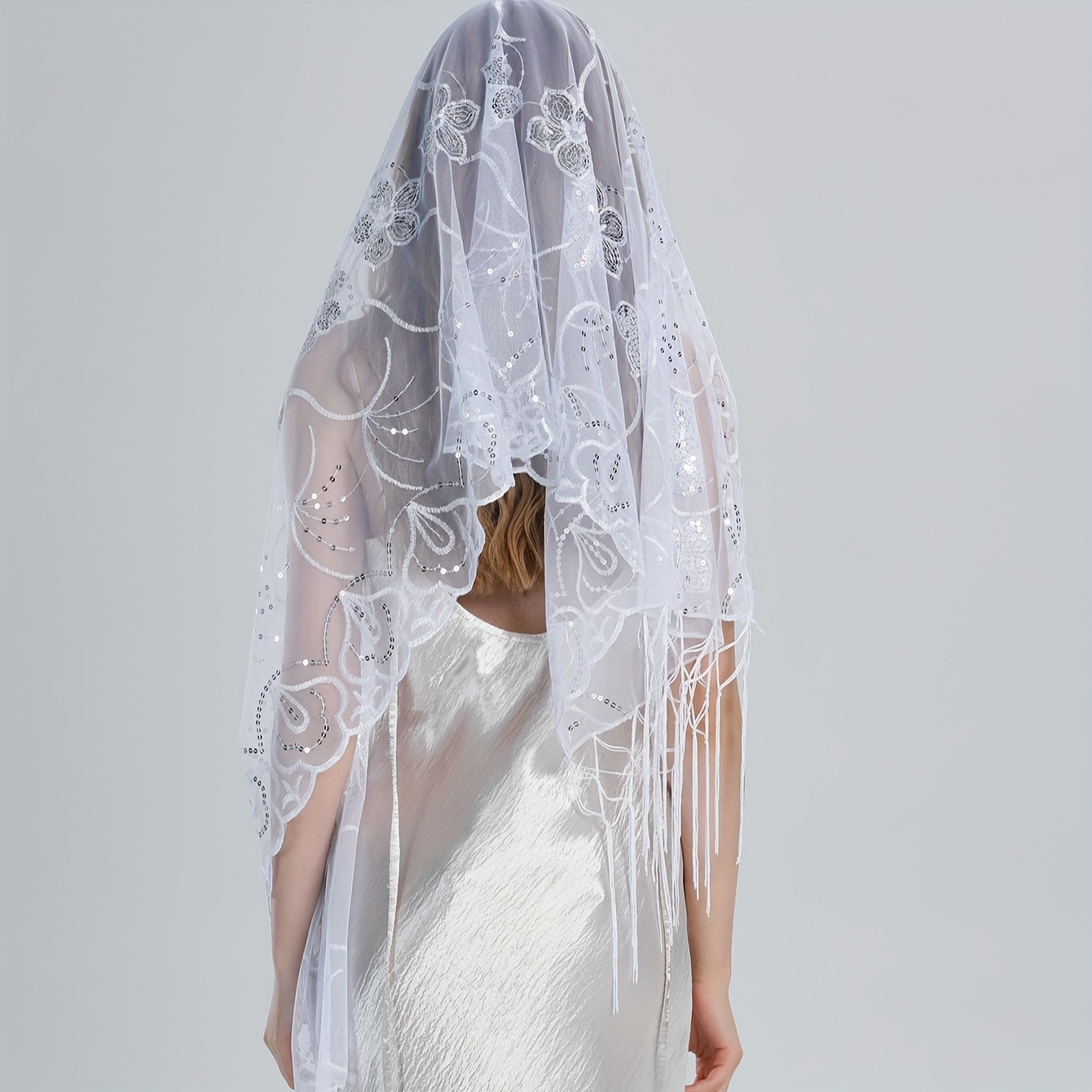 TEMU 우아한 시스루 웨딩 베일 헤드스카프 숄 - 결혼식, 정장 및 캐주얼 착용에 적합한 가벼운 다목적 액세서리 여성 장식 스카프