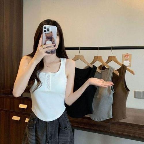 [에이치플러스몰]하절기트렌디 4버튼 데일리룩 미니멀 나시 소매없음