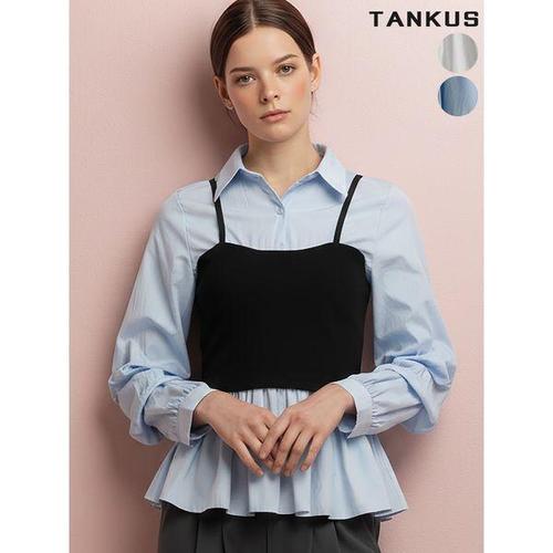 [탱커스]여성 셔링 소매 뷔스티에 블라우스