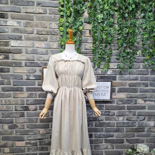 라티움 HC34 구김없는 앞전체오픈형 어깨셔링퍼브소매 브이넥가을 롱원피스 T2523OP01
