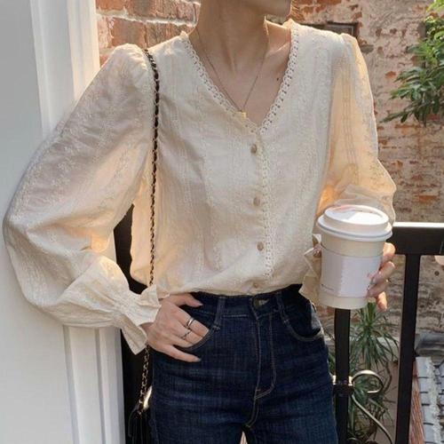 [오너클랜]인기상품 퍼프 레이스 v넥 프릴소매 소개팅룩 여자 블라우스 [WFLNM9X_260205]