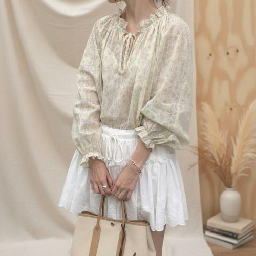 [옷자락]여성 프릴넥 벌룬소매 잔꽃 루즈핏 블라우스