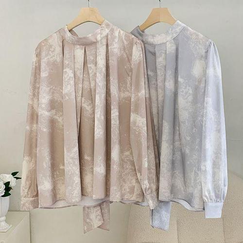 [신상오픈런]|CSH40A1|여성 스트라이프 롱타입 뒷리본 퍼프 소매 면 블라우스_22736117_597559