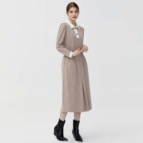 [샵앤][샵앤] 여성 배색 카라 밴딩 퍼프소매 미디 원피스 CL-WOP0309