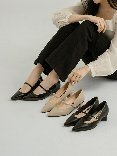 여자 힐 굽5센티 에나멜 정장 회사 심플한 구두