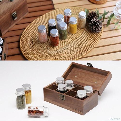 소분용시즈닝세트 야외취사 캠핑 소분용 유리병 우드케이스 포터블 WFJHAEZ