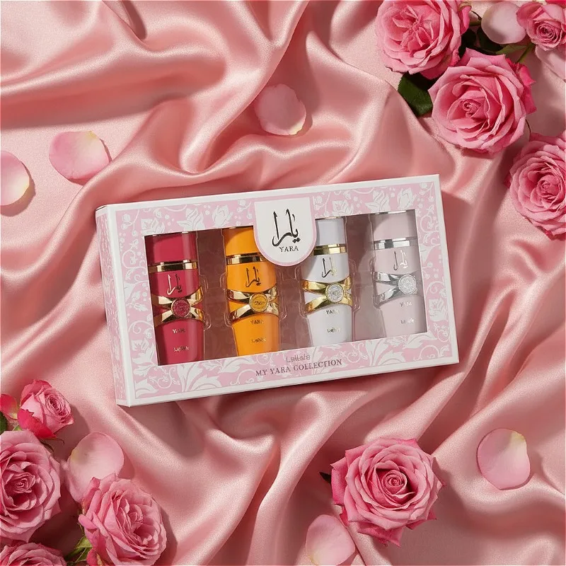 여성용 향수 선물 세트 4×25ml 오래 지속되는 오 드 퍼퓸 플로럴 프루티 고르망 컬렉션 바닐라 머스크 앰버 자스민 노트 포함