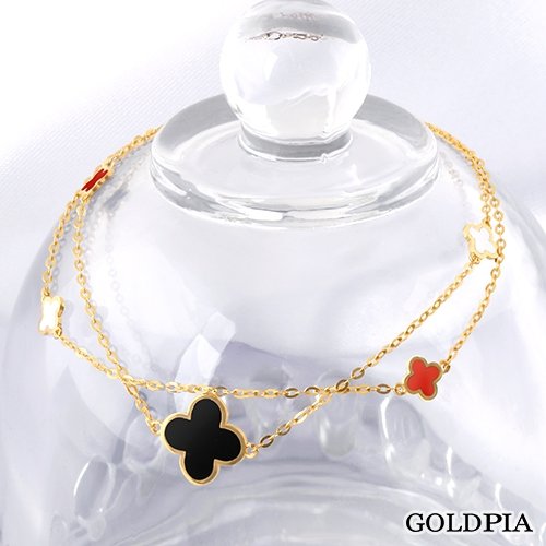 [골드피아] 14K 에나멜 크로바 두줄 팔찌