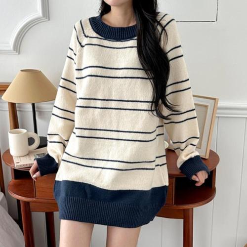 [오너클랜]인기상품 니트 원피스 가을 루즈핏 줄무늬 캐주얼 배색 [WFK5SOY_260405]