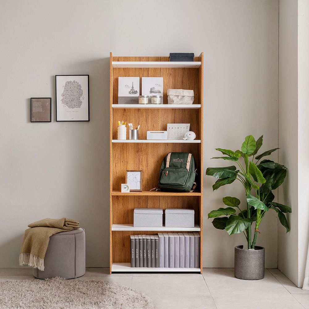 리나 5단 책장 (내츄럴+화이트) 원목 철제 수납 선반 학생 공부방 서재 책장