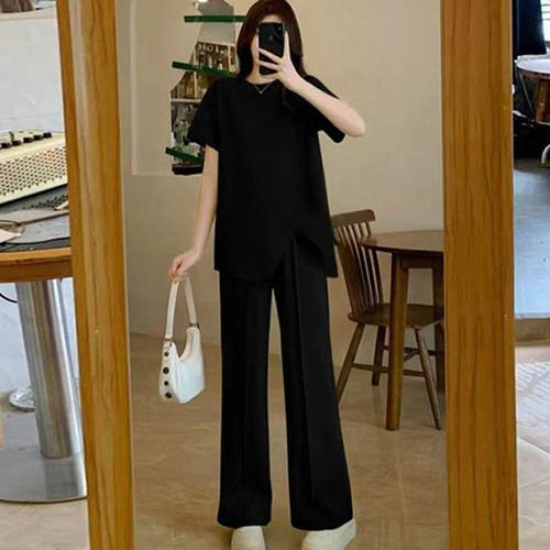[모노무드]모노무드 여성 잔골지 트임 반팔 트레이닝 세트 홈웨어 셋업