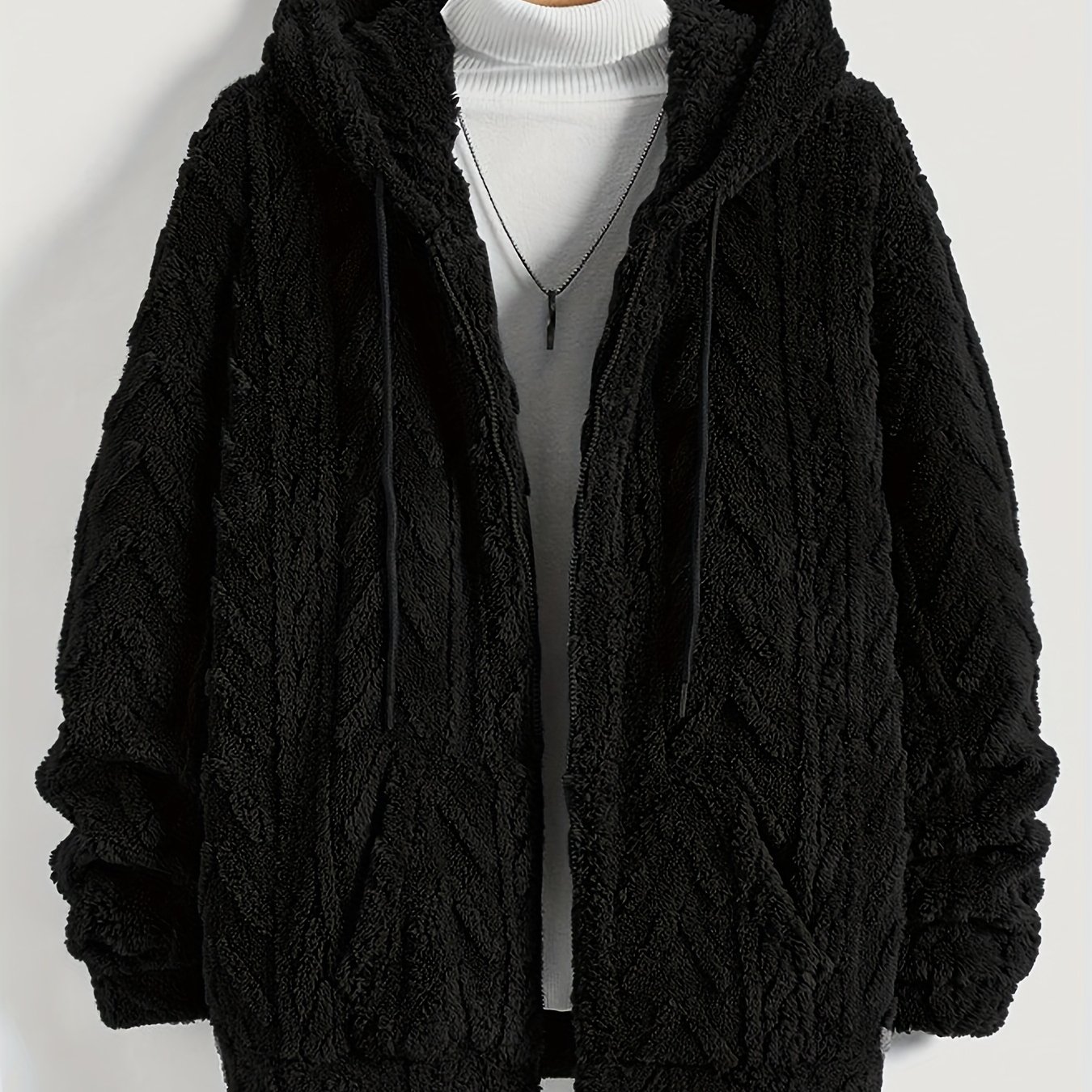 TEMU 남성용 따뜻한 역전 가능 플리스 후드 캐주얼 긴 소매 재킷, 단색 니트 원단, 폴리에스터 100%, 정상 핏, 지퍼 잠금, 안감 없음, 가을/겨울 주말용 - 성숙한 스타일