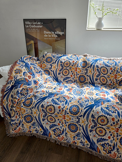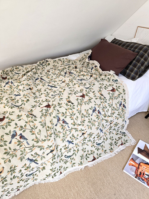 [블랑쉬하우스] 버드송 자가드 다용도 아트 블랭킷 소파커버