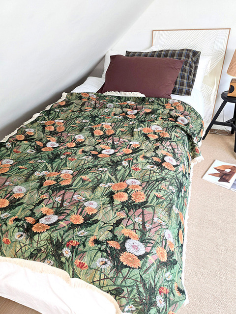 [블랑쉬하우스] 포레스트 블룸 자가드 아트 블랭킷 소파커버