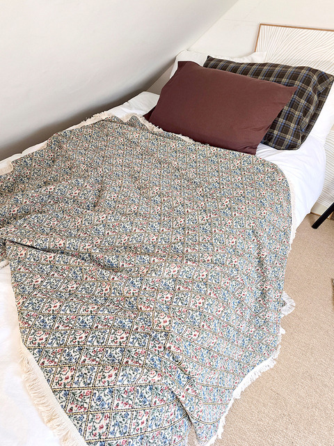 [블랑쉬하우스] 빈티지 블룸 자가드 아트 블랭킷 소파커버